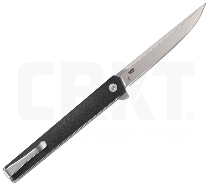 Mit seiner eleganten und schlanken Linie überzeugt das CEO Flipper Taschenmesser von CRKT. Das leichte und edel wirkende Gentlemanmesser verfügt über FRN-Griffschalen, die angenehm in der Hand liegen und fein strukturiert sind. Mittels Flipper wird die 8,5 cm lange Klinge geöffnet und das durch die Kugellagerung auch butterweich. Ein Liner-Lock arretiert diese dann zuverlässig und sorgt somit für ausreichend Arbeitssicherheit. Durch die Bauweise ist das Messer so leicht, dass es entspannt in der Hosentasche oder sogar in der Hemdtasche getragen werden kann. Der Kopf hinter diesem Messer ist der Designer Richard Rogers, der sich entschied, für das Messer einen japanischen Stahl auszuwählen, der als AUS-8 bekannt ist.