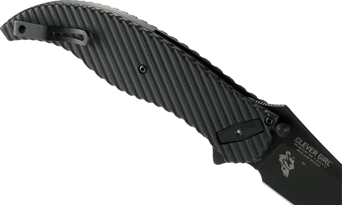 Austin McGlaun aus Columbus, Georgia, hat das Clever Girl Taschenmesser entworfen. Es entspricht seiner Philosophie, dass ein Messer mehr als nur ein Werkzeug ist. Es ist ein psychologisches Abschreckungsmittel, das sich stark von einer herkömmlichen Waffe unterscheidet. Es zeigt dem Gegner sehr schnell, dass man es ernst meint. Das CLEVER GIRL-Messer wurde so konzipiert, dass Sie es in die Hand nehmen, es im Bedarfsfall einsetzen und zu Ihrer Familie zurückkehren können.