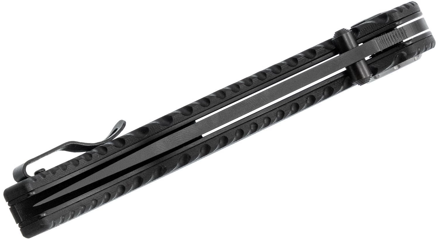 Die Klinge aus D2-Werkzeugstahl öffnet sich mit einem Flipper und wird durch eine Dead Bolt-Sicherung in der offenen Position gehalten. Der geformte Griff mit 3D-Textur ist aus massivem G10-Material gefertigt. Das Messer ist mit einem Clip zum Tragen in der Tasche ausgestattet.