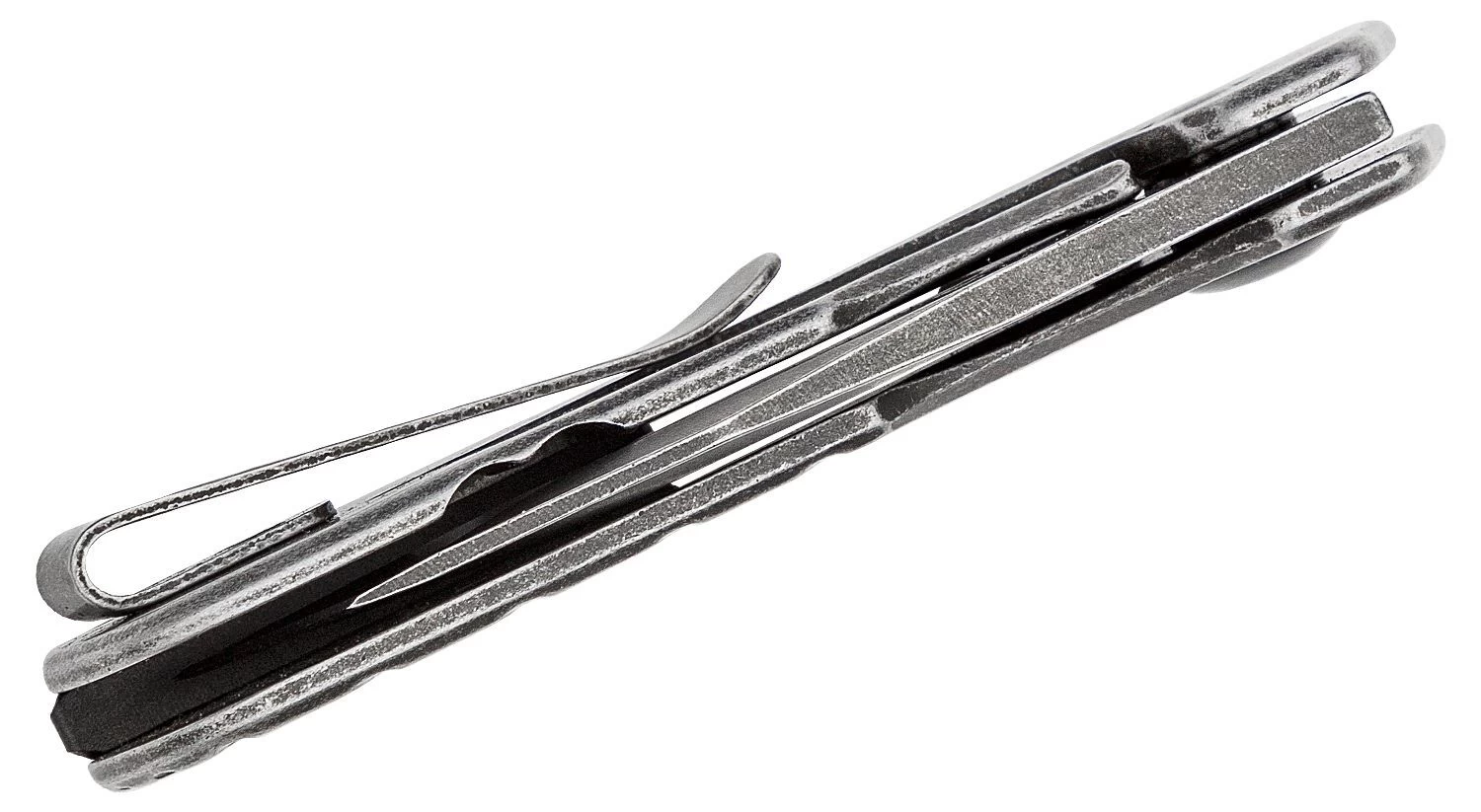 Die Klinge aus 8Cr13MoV-Stahl wird mit dem Flipper geöffnet und mit dem Framelock in der offenen Position gesichert. Der Griff ist aus rostfreiem Stahl gefertigt. Das Messer ist mit einem Clip zum Tragen in einer Hosentasche ausgestattet.