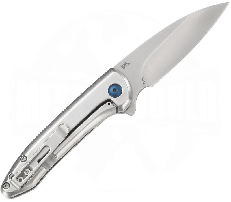 Das Delineation zählt ganz klar zu den eleganten Foldern, die sich durch die IKBS-Kugellagerung das leichte einhändige Öffnen der Klinge per Flipper ermöglicht. Ins Auge fällt auch sofort die blau eloxierte Klingenachsschraube in den aus Edelstahl gefrästen Griffschalen. Am Ende des Griffes kann auch ein Fangriemen oder ein Lanyard angebracht werden. Mit einer Klingenlänge von 7,5 cm hat das Delineation zudem eine angenehme Größe. Ein Frame-Lock übernimmt die Klingensicherung nach dem Öffnen, und mit dem Deep-Carry-Clip lässt es sich tief in der Tasche tragen. Das De.sign stammt von Eric Ochs