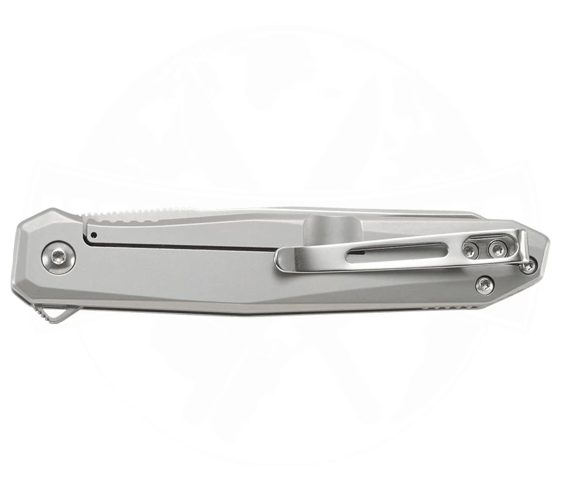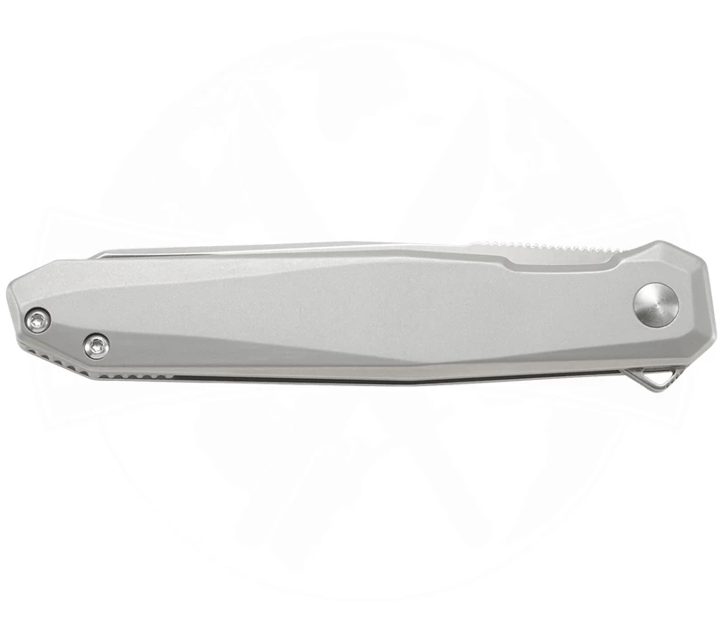 Mit einem geradlinigen und simplen äußeren Design macht das CRKT Facet einen sauberen Eindruck. Entworfen von Ken Onion kommt das handliche Taschenmesser mit stabilen Griffschalen aus Edelstahl. Die wohl am ehesten als modifizierte Sheep-Foot-Klinge zu beschreibende Messerklinge wird aus D2 Werkzeugstahl gefertigtt. Sie lässt sich über den Flipper, unterstützt vom IKBS Ball Bearing-System, geschmeidig und schnell öffnen. Der Frame-Lock hält die Klinge zuverlässig in Arbeitsposition. Sowohl der Flipper als auch die Daumenauflage sind geriffelt, um die Handhabung des Folders zu optimieren. Zum Tragen steht dem EDC ein Pocket-Clip zur Verfügung.