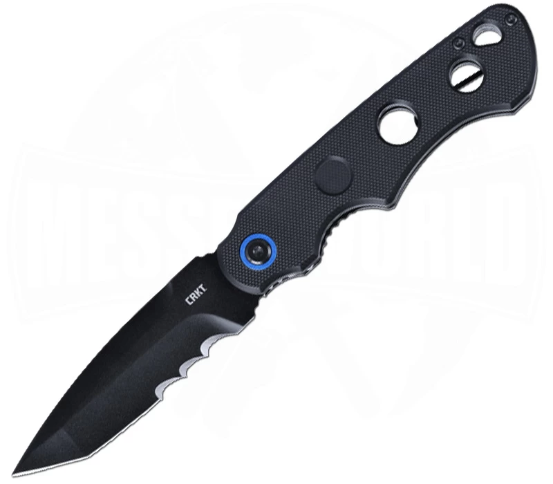 Eine 8,6 cm lange Tanto Klinge aus 12C27 wird von einem Teilwellenschliff und einer schwarzen Beschichtung begleitet, was sich für den Anfang schon mal sehr gut anhört. Der Griff aus G10 ist nicht nur robust, sondern auch ergonomisch geformt und mit gewichtsreduzierenden Aussparungen versehen. Er bietet einen sicheren Halt und reduziert gleichzeitig das Gesamtgewicht des Messers, welches bei 111 g liegt. Die Klinge läuft auf einem IKBS-Kugellager und wird beim Öffnen über den Flipper Federunterstützt. Man braucht den Flipper nur leicht antippen und schon ist die Kling bereit, euch bei allem zur Seite zu stehen, wofür Ihr es braucht. Zum Verriegeln der Klinge setzt CRKT auf einen bewährten und sicheren Linerlock. Selbstverständlich darf ein Tip-Up-Pocketclip nicht fehlen, um das wahnsinnig coole Hammond A.B.C. immer griffbereit zu haben. Einen Hingucker haben wir aber noch, den blau anodisierten Ring an der Achsschraube, ich finde, das lockert das Gesamtbild noch etwas mehr auf.