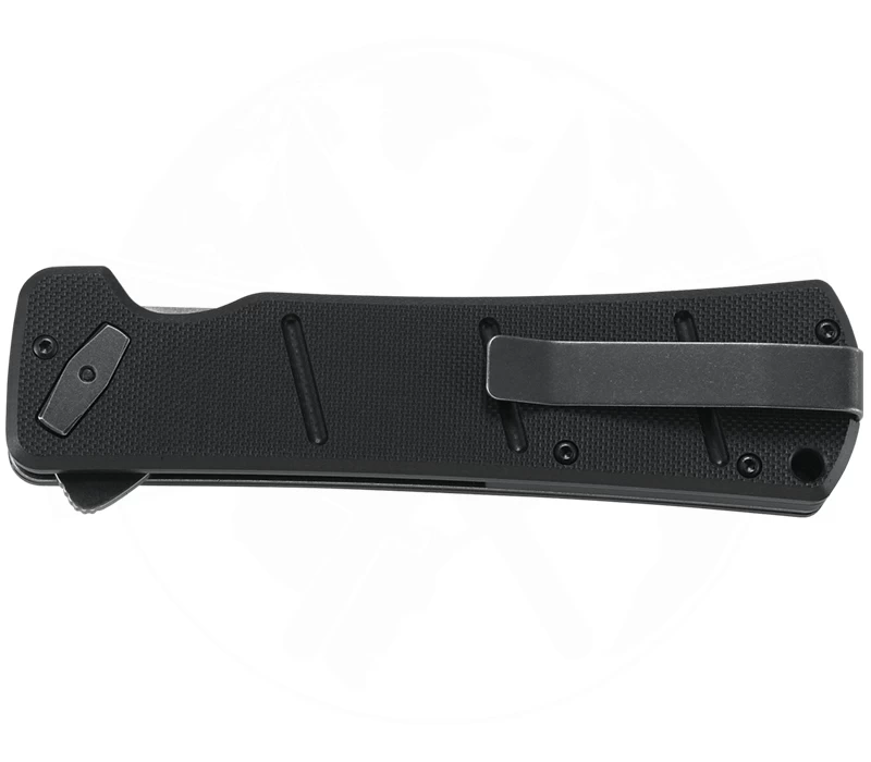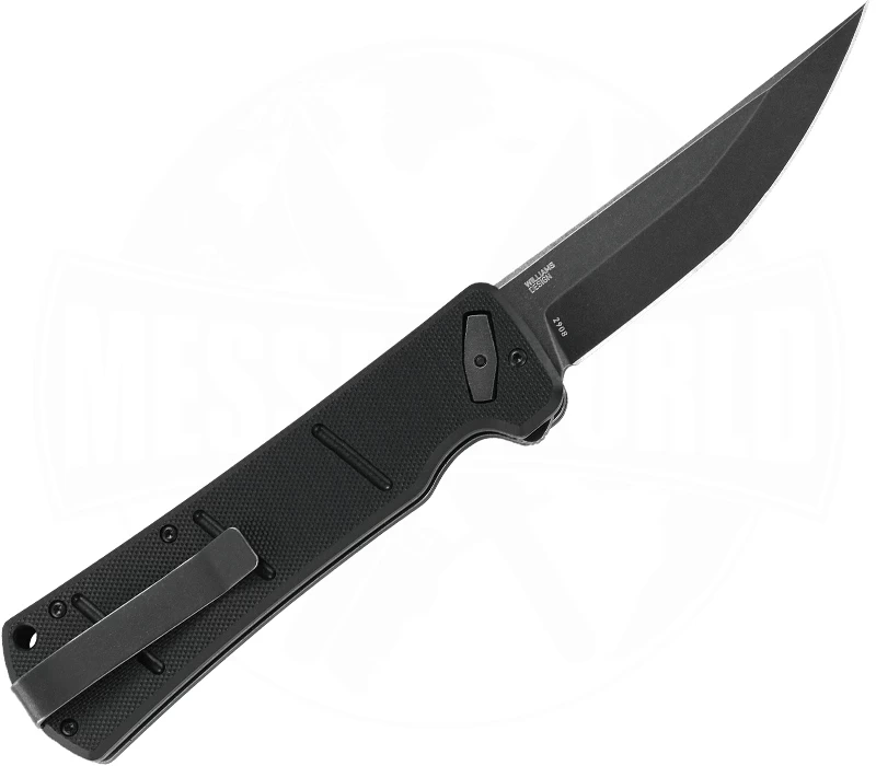 Mit dem taktischen Inazuma No Ken, Design von James Williams, bringt CRKT ein weiteres japanisch inspiriertes Taschenmesser. Der leistungsfähige D2 Klingenstahl in Verbindung mit der massiven Deadbolt-Arretierung machen es zu einem echten Arbeitstier. Auch in Sachen Bedienbarkeit ermöglicht CRKT mit dem angebrachten Flipper und der kugelgelagerten Klinge mit Federunterstützung einen optimalen Öffnungskomfort. Die texturierten, schwarzen G10-Griffschalen bieten guten Halt in jeder Situation. Dank seines Deepcarry-Clips kann das Modell unauffällig in der Hosentasche getragen werden und ist schnell griffbereit. Das Black Stonewashed Finish macht die 9,3 cm lange Klinge gegen Kratzer unempfindlich. An der Fangriemenöse am Ende des Griffes kann ein Lanyard befestigt werden, um Ihr Modell zusätzlich abzuheben.