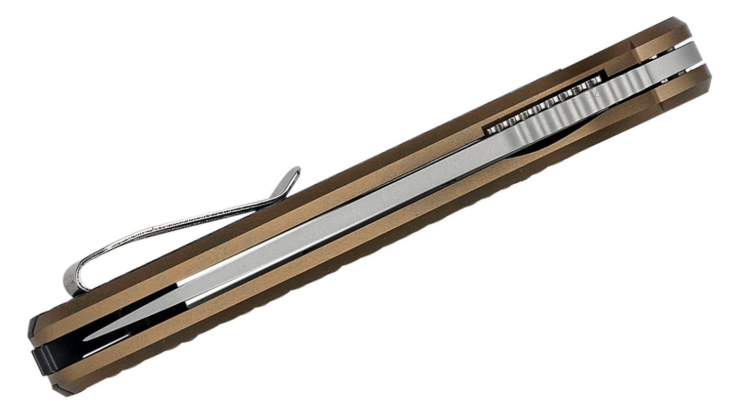Hergestellt aus rostfreiem Sandvik 12C27 Stahl, öffnet sich die Klinge mit einem Flipper und wird in der offenen Position von einem Linerlock-Verschluss gehalten. Die IKBS-Pivot-Pin-Konstruktion ermöglicht einen reibungslosen Lauf der Klinge beim Öffnen und Schließen. Der texturierte Aluminiumgriff in Kombination mit dem stark texturierten G10-Liner bietet unter den meisten Bedingungen einen hervorragenden Grip. Das Messer ist mit einem Clip für das Tragen in der Tasche ausgestattet.