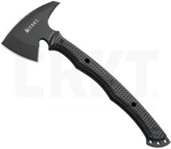 Als Tomahawk ist das Kangee T-Hawk von CRKT und Ryan Johnson von RMJ Tactical ein echtes Prachtstück. Vielseitig, einfach einzusetzen und für seine Größe und praktikable Art sehr leicht. Es ist ein Universalwerkzeug für gröbere Arbeiten. Ryan Johnson ist seit mehr als 3 Jahrzehnten ein gefeierter Designer für Outdoorwerkzeug. Das ganze Beil ist aus einem Stück SK5-Kohlenstoffstahl gefertigt. Die Scheide, der Dorn sowie das gesamte Beil sind pulverbeschichtet. Der Griff ist mit Fingermulden und griffigem Checkering ausgestattet und bietet so überdurchschnittliche Griffeigenschaften, und so kann das T-Hawk auf unterschiedlichste Weisen gegriffen werden. Die Griffschalen können zur Reinigung demontiert werden. Im Lieferumfang ist eine MOLLE-kompatible Kydex-Scheide mit Gurt und Kunststoffschnellverschluss enthalten.