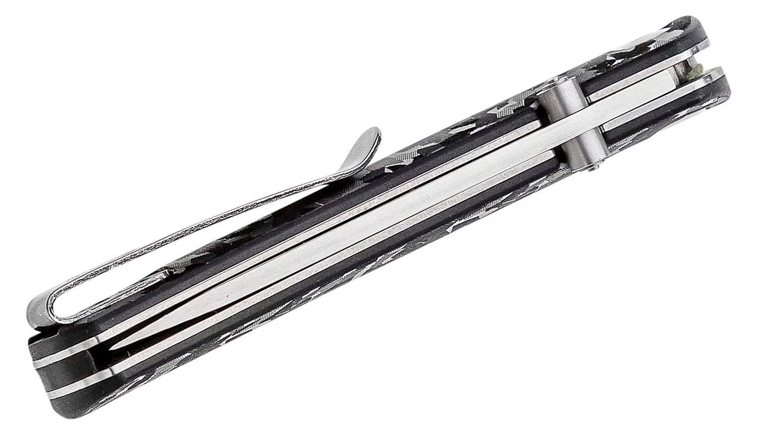 Die Klinge aus rostfreiem 8Cr13MoV-Stahl öffnet sich mit einem Stift auf der Klinge und wird durch die Front Lock-Sicherung in der offenen Position gehalten. Der Griff ist aus strapazierfähigem GRN-Material gefertigt. Das Messer ist mit einem Clip für das Tragen in der Tasche ausgestattet.