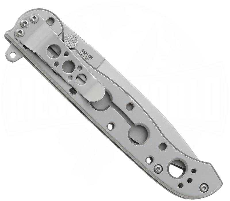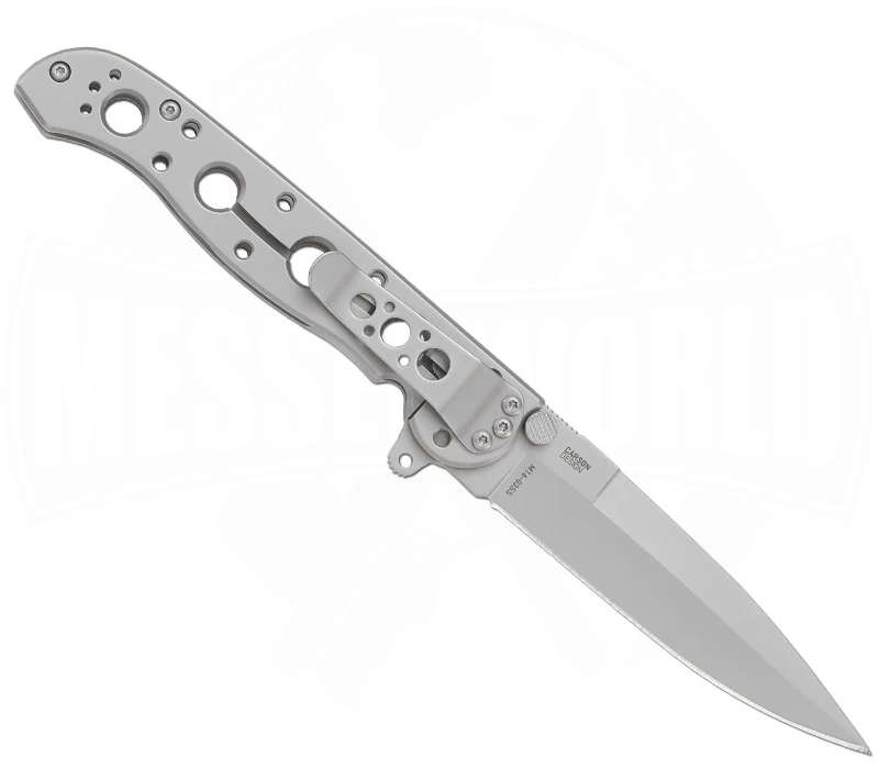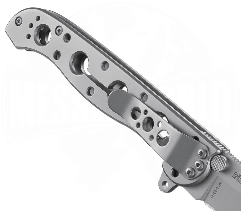 Das M16-03 SS ist ein schlankes, leichtes und praktisches Ganzstahl-Taschenmesser im taktischen Stil. Es ist für einen starken und funktionellen Gebrauch ausgelegt. Mittels Flipper oder Daumenpin lässt sich die 9 cm lange Klinge aus 12C27 Stahl aus dem Heft heben. Die Droppoint-Klinge wird sicher arretiert mit dem Framelock. Ein praktischer, vierfach umsetzbarer Clip ist auch vorhanden.