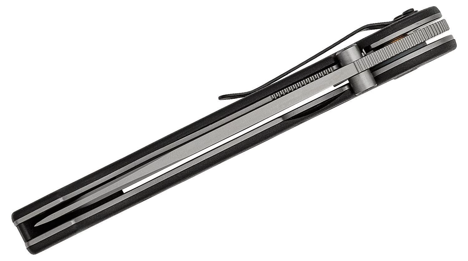 AUS 8 Klinge aus rostfreiem Stahl, gesichert in der offenen Position durch Linerlock Sicherheit verstärkt mit AutoLAWKS System. Öffnet sich mit einem Flipper. Griff aus GFN-Material. Auswechselbarer Clip für das Tragen in der Tasche.