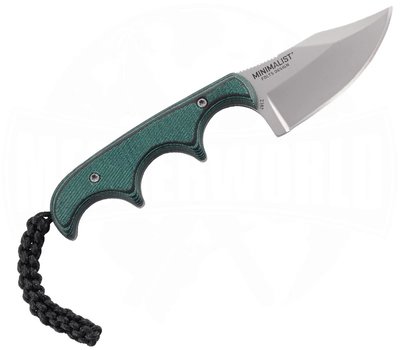Das Minimalist Bowie wurde von Alan Folts entwickelt. Klein, handlich und gebrauchsfähig waren die Anforderungen an dieses Messer. Die bauchige Klinge ist aus 5Cr15MoV gefertigt. Trotz kompakter Bauform bietet diese Messer eine außergewöhnliche Robustheit. Die klassische bauchige Bowieform ist geeignet für kleinere Arbeiten rund um Camp und Jagd. Natürlich wird auch der urbane Alltag durch die Vielseitigkeit dieser traditionellen Klingenform mit Leichtigkeit bewältigt. Kaum ein anderes Messer bietet bei derart kompakten Abmessungen und einem so geringen Gewicht dieses Maximum an Ergonomie. Die mitgelieferte Zytel-Scheide mit Tragekordel wird von Hand an das Messer angepasst.