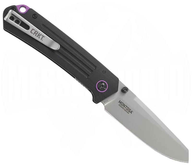 Als eingefleischter Rancher in den Bergen New Mexicos weiß Richard Rogers,wie wichtig ein verlässliches Messer im Alltag ist. Daher entwarf er das Montosa als robusten Alltagshelfer für die Hosentasche. Im Design der Klinge spiegelt er seine Heimat, die Magdalena Berge wider, und entschied sich deswegen für eine gradlinige und praktische Form. Die 8,2 cm lange Sheepfoot Klinge besteht aus dem stabilen 8Cr13MoV Stahl, der eine gute Schnitthaltigkeit bietet und rostfrei ist.besitzt. Der beidseitige Daumenpin lässt das Messer mühelos öffnen, wo es in der Arbeitsposition mit einem widerstandsfähigen Linerlock arretiert. Die Griffschalen aus schwarzem G10 sind durch die eingefrästen Rillen sehr griffig und liegen angenehm in der Hand. Der anodisierte Ring um die Achsschraube und der Spacer in der gleichen Farbe geben einen erfrischenden Akzent. Da der Taschenclip leicht umgeschraubt werden kann, ist das Messer auch perfekt für Linkshänder geeignet.