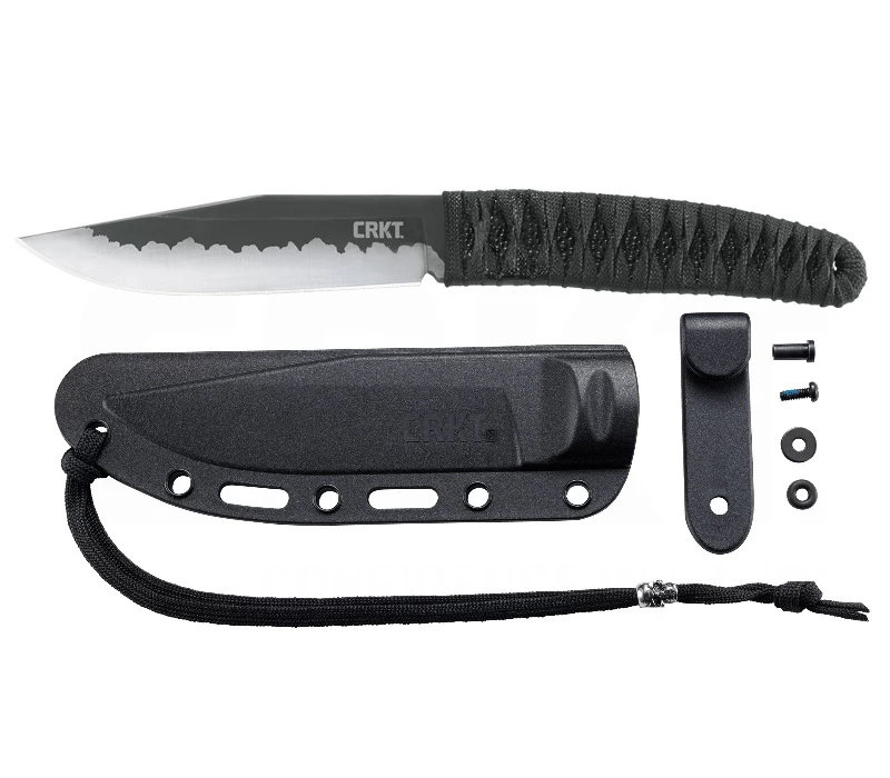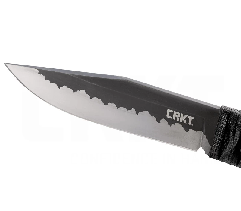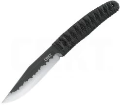 Das Nishi von CRKT ist mit seiner Klingenlänge von 11,2 cm gut für alltägliche Arbeitet gerüstet. Das bei diesem Konzept Lucas Burnley seine Hände im Spiel hat, lässt sich nicht verleugnen. Bei der Gestaltung des Nisihi ließ sich der Designer von der japanischen Ästhetik inspirieren. Die rostfreie Klinge aus 8Cr13MoV Stahl besitzt eine markante, säuregeätzte Titannitrid-Beschichtung und hebt dadurch das Two-Tone-Finsih hervor. Das flache Messer ist perfekt ausbalanciert. Auch die mit Epoxidharz verstärkte Griffwicklung aus einer schwarzen Kordel trägt kaum auf. Die glasfaserverstärkte Nylonscheide (GFK) mit Kordel und Skull ist für mehrere Trageoptionen ausgelegt.