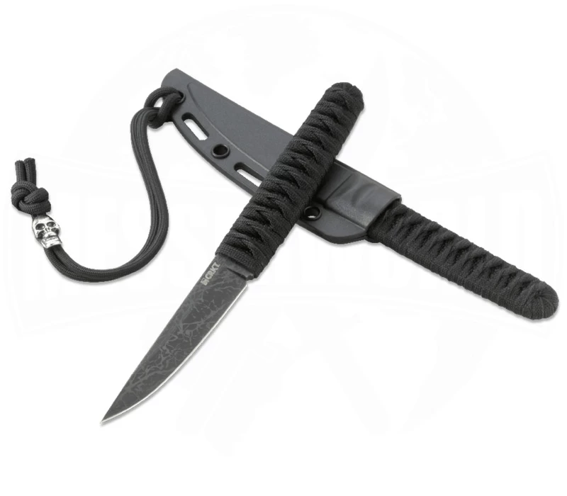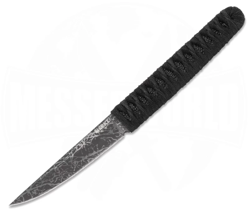 Das taktisch inspirierte Obake ist ein praktisches EDC-Messer für den alltäglichen Gebrauch. Das von Lucas Burnley entworfene Design eignet sich für viele verschiedene Aufgaben, ohne dabei sperrig oder unhandlich zu werden. Besonders auffallend ist das geätzte Finish auf der 9 cm langen Klinge, das perfekt zum Stil des praktischen Alltagsmessers passt. Gefertigt aus 8Cr13MoV Stahl, bleibt das Messer nicht nur zuverlässig scharf, sondern kann auf mühelos wieder nachgeschliffen werden, sollte es mal nach unzähligen Abenteuern an Schärfe verloren haben. Damit es immer angenehm in der Benutzung ist, wurde der Griff mit einem schwarzen Band umwickelt, das weich und griffig zugleich ist und in jeder Hand perfekten Halt bietet. Eine im Lieferumfang enthaltene Zytel-Scheide ermöglicht ein Anbringen des Obake an der Ausrüstung, oder als Neck-Knife um den Hals getragen.