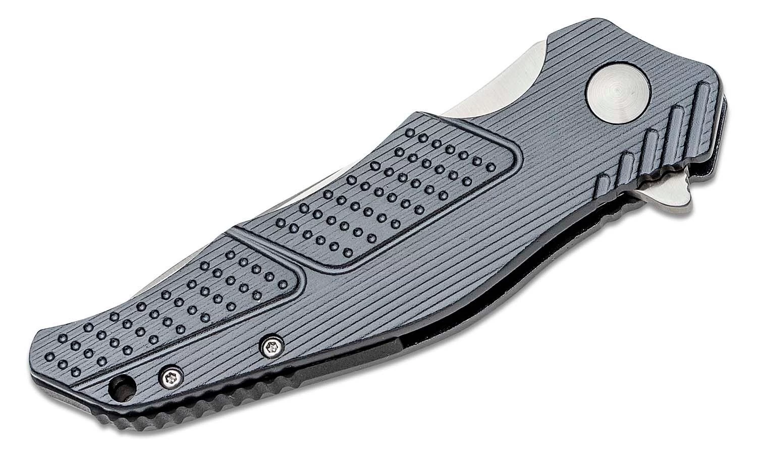 Die Klinge aus rostfreiem Stahl 8Cr13MoV wird mit einem Flipper geöffnet. Sie wird durch eine Linerlock-Sicherung in der offenen Position gehalten. Der Griff ist aus leichtem Aluminium gefertigt. Am Ende des Griffs befindet sich ein Lanyard-Loch. Das Messer ist mit einem Clip zum Tragen in einer Tasche ausgestattet.