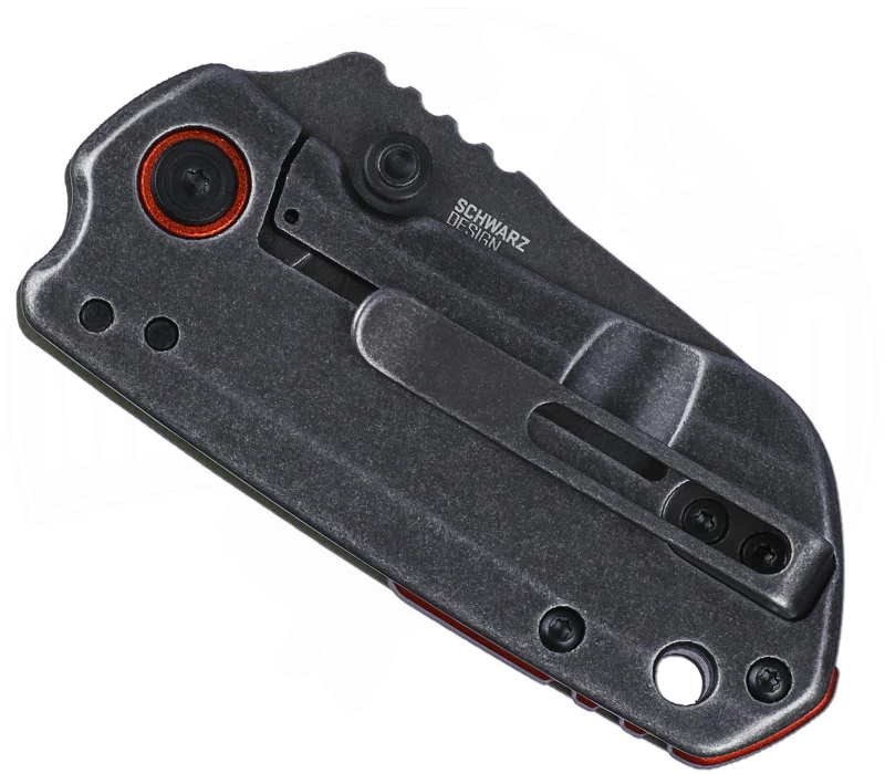 Als kleinere Version des Overland von CRKT kommt das amerikanische Messerunternehmen nun mit dem Overland Compact Klappmesser. Mit einer Klingenlänge von 5,7 cm eignet sich der Folder besonders gut für alltägliche Schneidaufgaben. Dank des flachen Designs und des Pocket-Clips kann das Overland Compact bequem in der Hosentasche getragen werden. Auch die schicke Optik steht hier im Vordergund: Mit dunkelgrünen Griffschalen auf der einen Seite und Black Stonewash Edelstahlgriffschalen auf der anderen, macht das Messer einen tollen Eindruck. Gefertigt ist die Klinge aus D2 Werkzeugstahl. Sie ist ebenfalls mit einem Blackwash Finish versehen. Natürlich ist mit dem Frame-Lock auch für ausreichend Sicherheit gesorgt. Sowohl der Spacer als auch der Klingenachs-Schraubenring sind orangefarben anodisiert, was einen schönen Kontrast schafft. Das Design stammt vom Messerdesigner T.J. Schwarz.