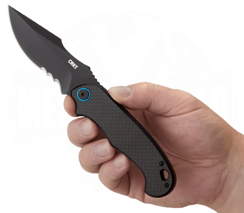 Die perfekte Mischung aus Arbeitstier und EDC-Messer ist das P.S.D. Black von CRKT, das mit einem widerstandsfähigen Liner-Lock und einer formschönen Klinge aus deutschem 1.4116 Edelstahl überzeugt. Zudem sieht es mit seinen Griffschalen aus Kohlefaser mit G10-Basis sportlich aus. Passend dazu ist die Klinge mit EDP-Beschichtung ebenfalls in Schwarz gehalten. Die aufregende Klingenform sieht nicht nur interessant aus, auch bietet sie durch die Mulden im Klingenrücken Vorteile im Handling. Diese lassen sich als zweiten Daumenauflage benutzen. Der Griff ist sehr ergonomisch geformt und bietet eine Fingermulde für den Zeigefinger für sehr präzise Arbeiten. Die blau anodisierte Klingenachsschraube setzt einen farblichen Akzent. Natürlich darf auch der Flipper nicht unerwähnt bleiben. Dieser schafft es, die Klinge mittels Federunterstüzung und IKBS Ball Bearing-System schnell und zugleich sehr geschmeidig mit einer Hand zu öffnen. Entworfen wurde das P.S.D. Black vom Designer Jim Hammond, der das Messer für schwierigere Schneidaufgaben mit Veff Serrations, einer speziellen Art der Teilsägezahnung, ausrüsten ließ. Ein umsetzbarer Pocket-Clip und eine großzügig angelegte Fangriemenöse runden den Folder ab.