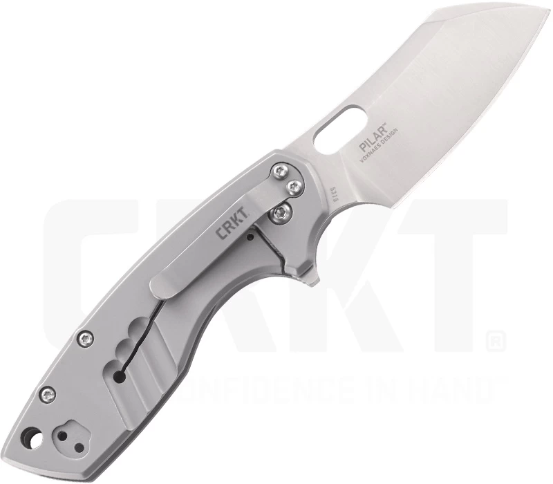 Das Pilar Taschenmesser von CRKT verbindet minimalistisches Design mit effektiver Funktionalität. Das Design stammt vom vom Jesper Voxnaes aus Dänemark, der mit seinen innovativen und praktischen Klingenformen immer wieder begeistert. Das Pilar ist ein Gebrauchsmesser, das geschlossen unauffällig getragen werden kann. Mittels Flipper wird die 6,8 cm lange Klinge aus 8Cr14Mov Stahl geöffnet und durch ein Edelstahl-Framelock sicher arretiert. Es ist ein ordentlich bedienbares Messer, das dank der Zeigefingerfehlschärfe für unterschiedliche Schneidpositionen zur Verfügung steht. Die Vorder- und Rückseite des Griffes sowie die Griffschale besteht aus Edelstahl. Am Griffende kann eine Fangschnur befestigt werden. Mit dem kompakten Clip (Tip-up/Tip-down) kann das Pilar bequem an der Kleidung befestigt werden und ist mit der auffallend modifizierten Sheepfoot-Klinge eine schicker Helfer.