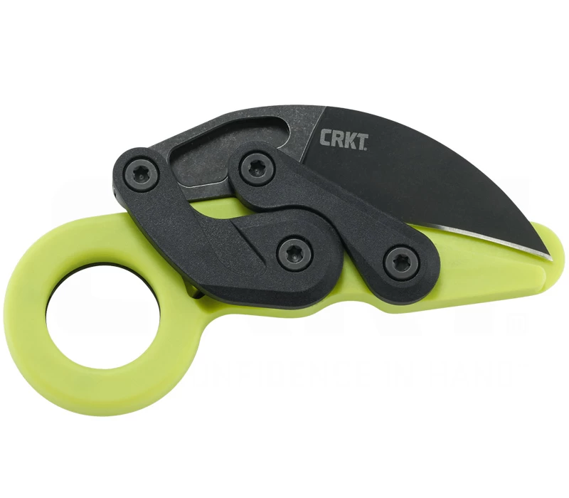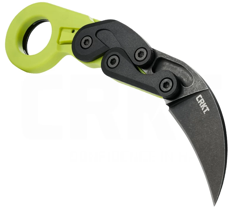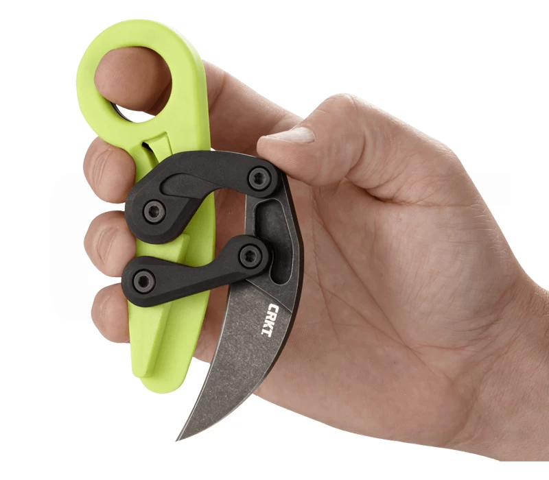Als Griffelement wird ein leichtes und dennoch äußerst robustes Thermoplastik namens Grivory verwendet, welches zum stabilem Gesamtbild des Messer hervorragend passt. Das Design ist bis zum Schluss durchdacht: So liegt der Befestigungsclip beim Arbeiten mit dem Messer flach am Griff und trägt nicht auf. Per Fingerdruck erscheint er aus der Versenkung, und man kann nun das Messer an der Ausrüstung befestigen. Mit diesem Messer hängt CRKT die Messlatte wieder einmal höher und wird auch Messerenthusiasten in seinem Bann ziehen.