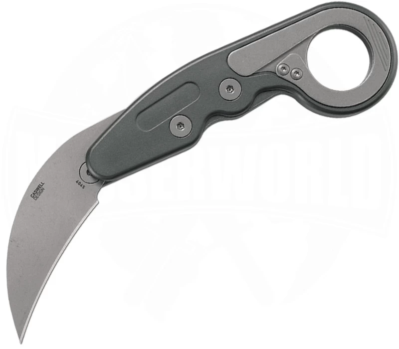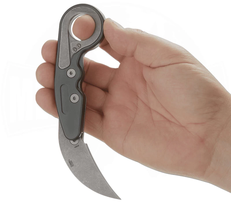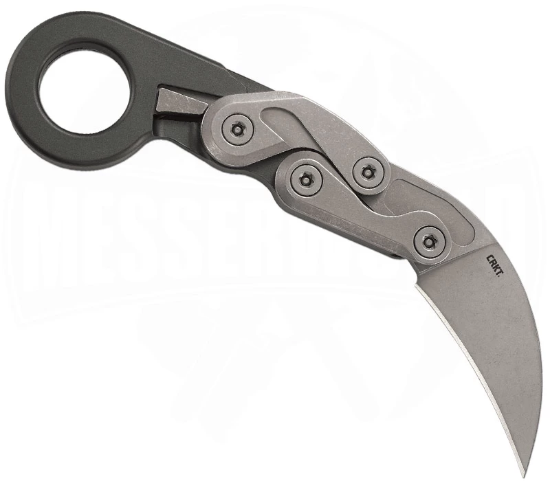 Du bist auf der Suche nach einem Karambit für den Alltag? Dann hast du es mit dem Provoke Compact vielleicht gefunden. Das von CRKT hergestellte Messer ist mit seinen 16,83 cm perfekt für die Hosentasche geeignet. Ein Clip auf der linken Seite zur Tip-Up Trageweise ermöglicht den sicheren Transport. Die 5,7 cm lange Hawkbill-Klinge wird über eine Daumenöffnung in Position gebracht, aber nicht um eine Achse wie bei anderen Modellen, sondern parallel zum Griff auf zwei beweglichen Armen nach vorne geschwenkt. Die besondere Kinematic-Verriegelung sichert sie dann zuverlässig. Der Griff aus grauem Aluminium liegt durch das moderne Design gut in der Hand. Der bekannte D2 Klingenstahl sorgt für eine ausgezeichnete Bruchsicherheit und hält lange die Schärfe. Zusammen mit dem geringem Gewicht von 125 g schuf Joe Caswell einen wirklich außergewöhnlichen Folder.