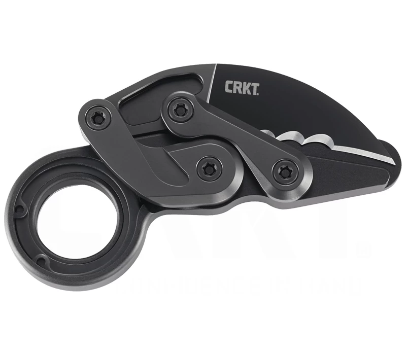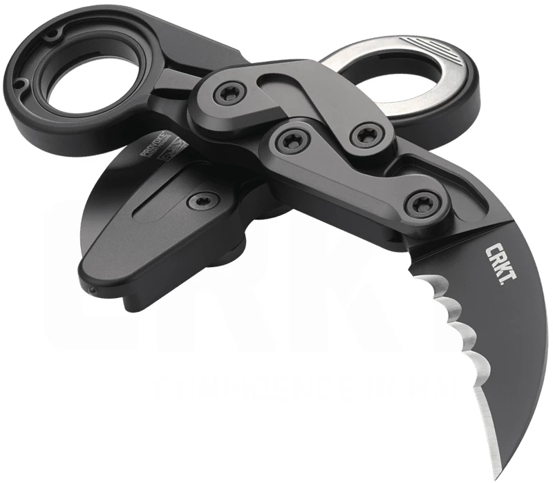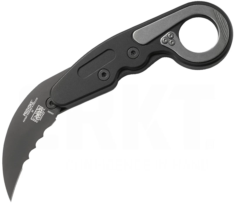 Das Provoke von CRKT ist ein revolutionäres Karambit-Taschenmesser und mit der Kinematic ™ Technologie ausgestattet. Joe Caswell aus Newbury Park, Kalifornien, entwickelte diesen außergewöhnlichen Öffnungs- und Verschlußmechanismus. Dabei wird die titanbeschichtete, 6,2 cm lange Hawkbill-Klinge aus D2 Stahl vom Griff aus parallel nach vorne herausgeschwenkt und verriegelt. „Dienen und schützen“ ist der Grundgedanke bei diesem robusten taktischen Messers.