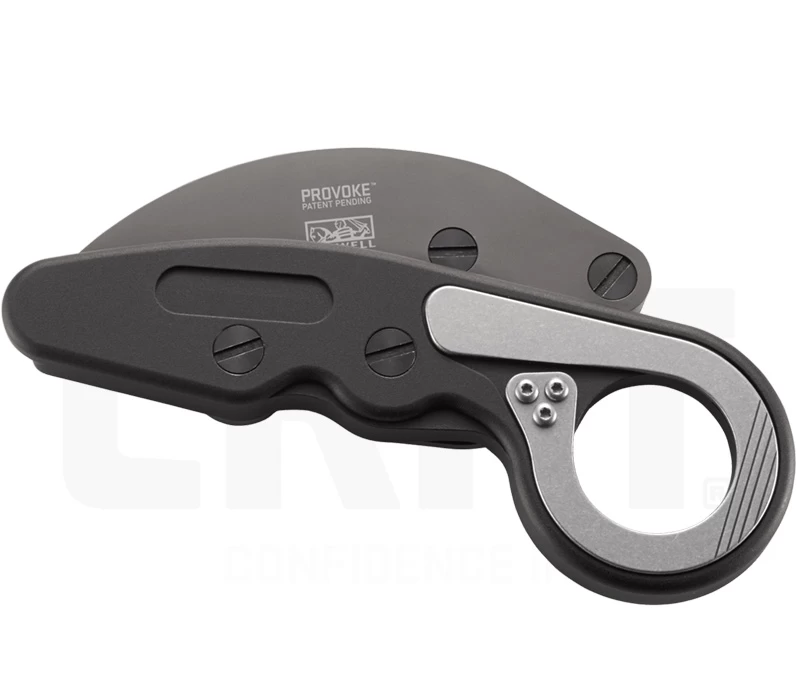 Das Provoke von CRKT ist mit keinem anderen Taschenmesser vergleichbar. Es greift das Design eines Karambits auf und ist das erste Messer, das mit der Kinematic ™ Technologie ausgestattet wurde. Joe Caswell aus Newbury Park, Kalifornien, entwickelte diesen außergewöhnlichen Öffnungs- und Verschlußmechanismus. Dabei wird die moderne, titanbeschichtete, 6,2 cm lange Hawkbill-Klinge aus D2 Stahl vom Griff aus parallel nach vorne herausgeschwenkt und verriegelt. „Dienen und schützen“ ist der Grundgedanke bei diesem robusten taktischen Messers.