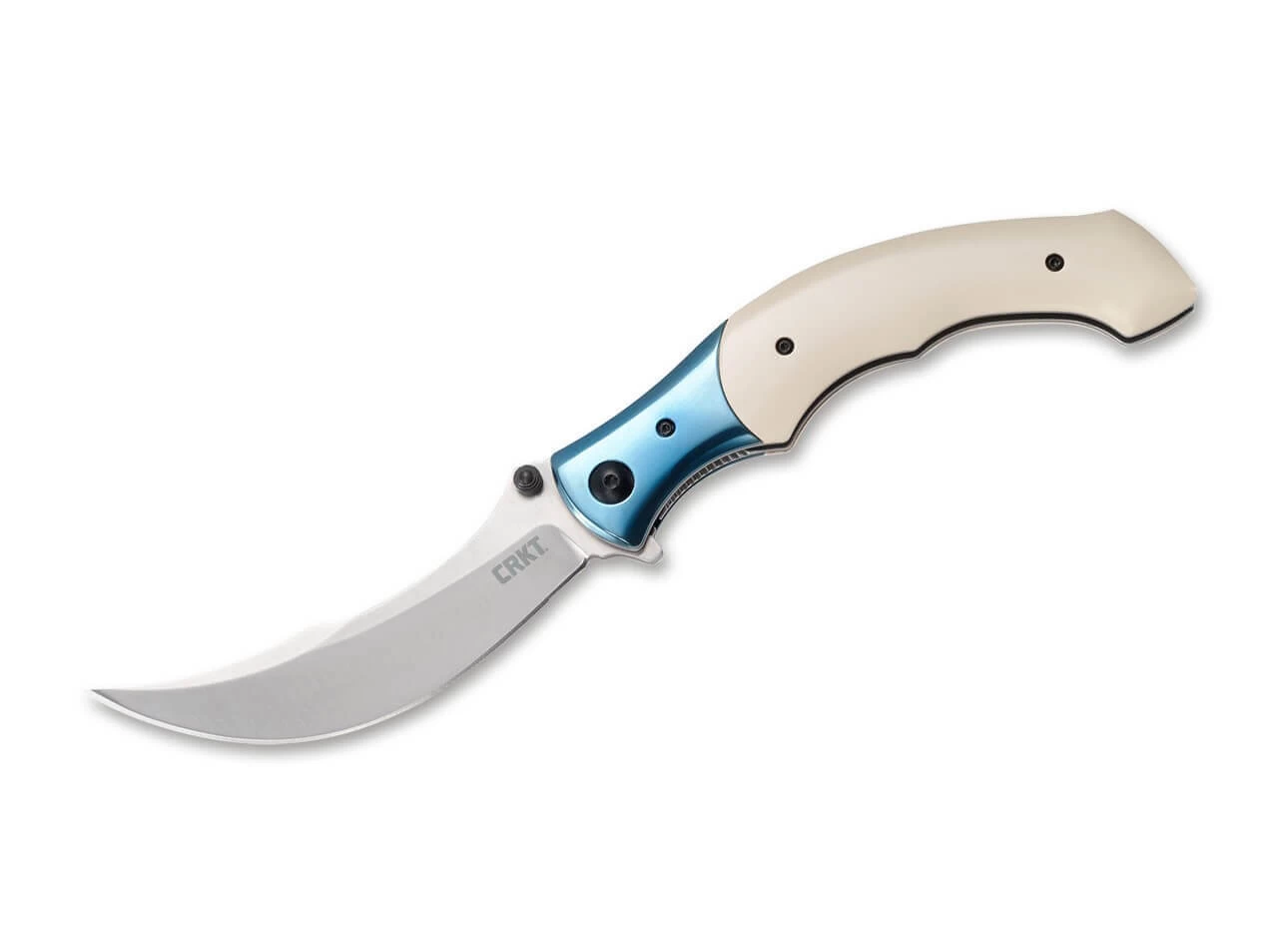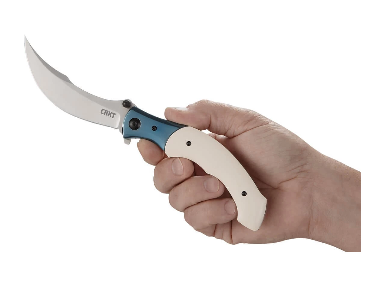 Das CRKT Ritual greift die geschwungenen Formen eines Persischen Dolchs auf und interpretiert diese herrschaftliche Messerform völlig neu. Alan Folts versieht den Folder mit der typisch gebogenen Klinge aus Sandvik 12C27, welche federunterstützt wahlweise per Flipper oder Daumenpin öffnet und durch den Linerlock gesichert wird. Der ergonomische Griff sorgt für eine gute Handlage und besteht aus einem spannenden Materialmix mit blau anodisierten Edelstahlbacken und einer Elfenbein-Micarta Beschalung. Mit Clip (Tip-up/r).