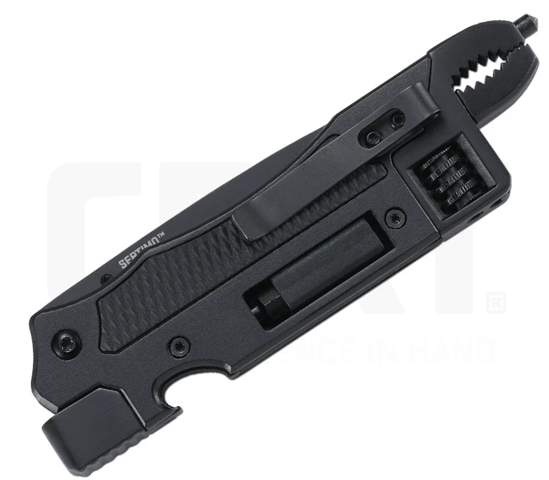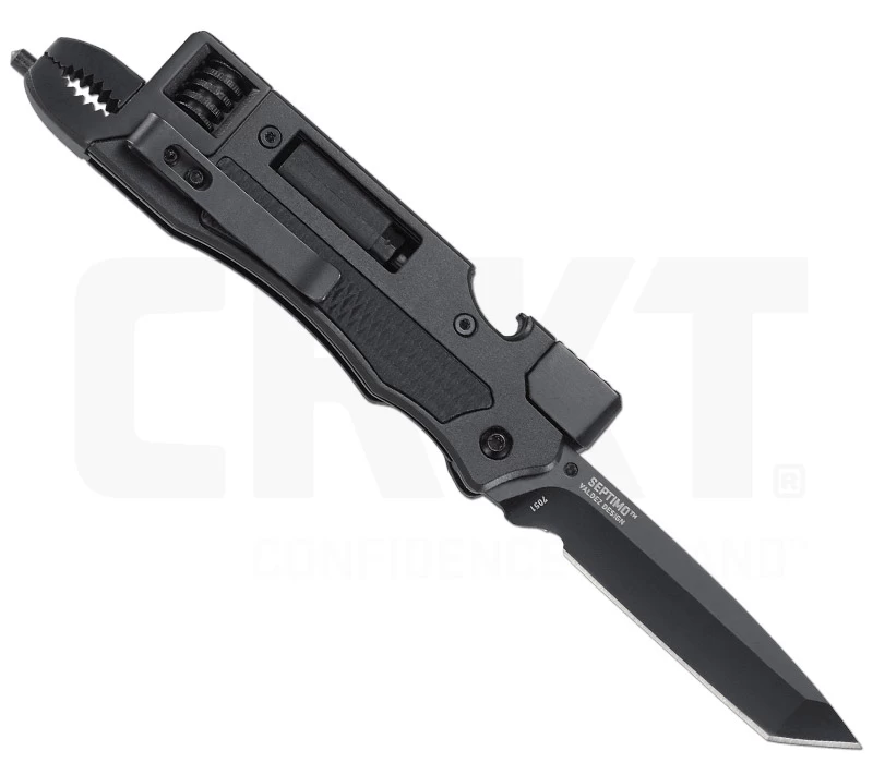 Mit dem Septimo Multi-Tool hat CRKT einen kleinen Werkzeugkasten für die Hosentasche geschaffen. Es verfügt über 7 nützliche Funktionen, wovon eine die Tantoklinge aus 8Cr13Mov-Stahl ist, die mittels Daumenpin kinderleicht geöffnet werden kann. Der stabile Linerlock hält die 7,3 cm lange Klinge sicher in ihrer Arbeitsstellung. Desweiteren enthält das Tool einen Schlitzschraubendreher, einen Phillips-Kreuzschlitzschraubendreher, einen Flaschenöffner sowie einen Glasbrecher und eine Zange am Griffende. Mit dem Minitool zeigt CRKT einmal mehr, für was die Marke steht, nämlich für Innovation. Lass dich überzeugen und schnapp dir dein neues Miniwerkzeug !