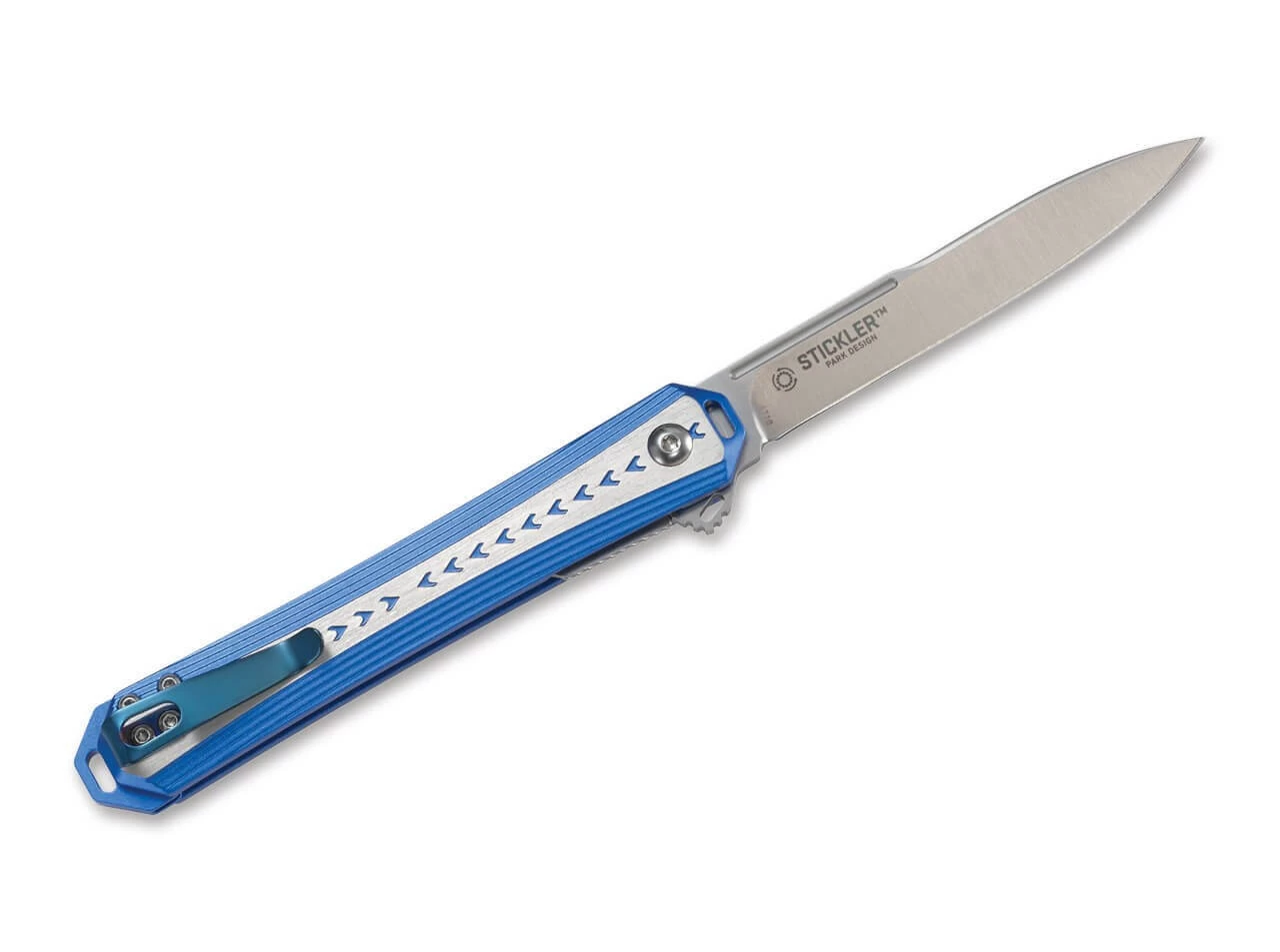 Das schlanke Gentleman Messer ist eine Hommage an die klassischen Melon Tester Knives, die für ihre lange und schmale Klinge bekannt sind und für die Qualitätsbestimmung von Obst und Früchten zum Einsatz kamen. Der Assisted Opener öffnet die Spearpoint Klinge aus 12C27 wahlweise per Flipper oder Nagelhau und wird durch den Liner Lock zuverlässig gehalten. Der texturierte Griff aus blauem Aluminium liegt jederzeit sicher in der Hand und ist mit einem Tip-Up (r) Clip ausgestattet.