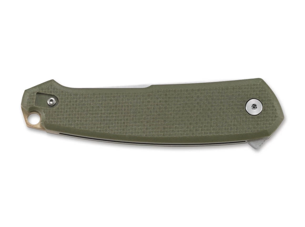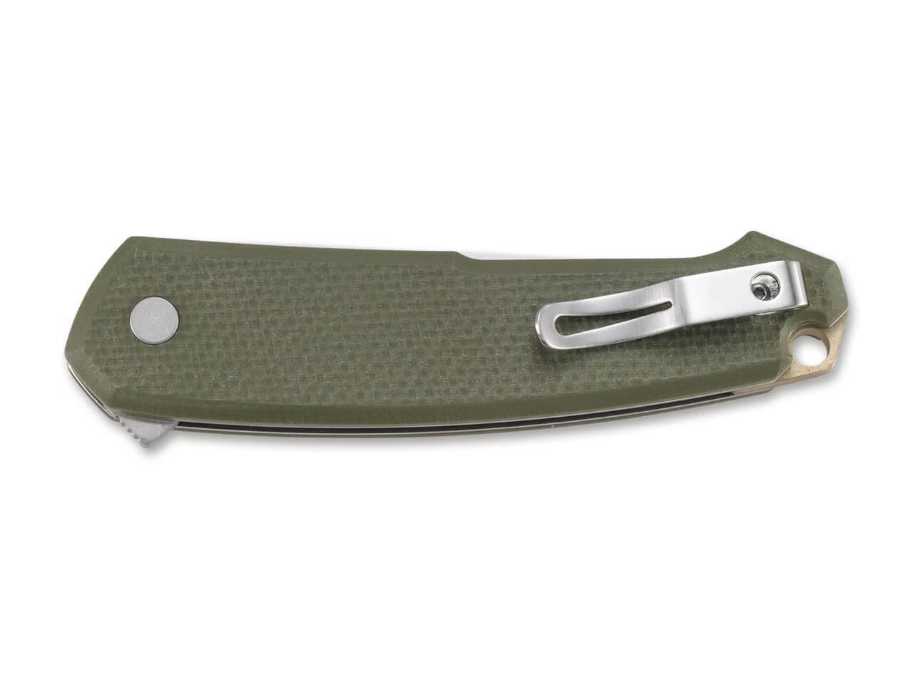 Der geradlinige Folder von Jesper Voxnaes punktet mit schlichter Eleganz und überzeugt mit seiner satinierten Klinge aus 4116. Das Messer öffnet federunterstützt per Flipper und verriegelt mit dem sicheren Linerlock. Der Griff aus G10 ist rutschfest und verfügt über eine Fangriemenöse und einem umsetzbaren Clip (Tip-up/l+r).